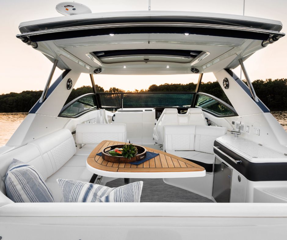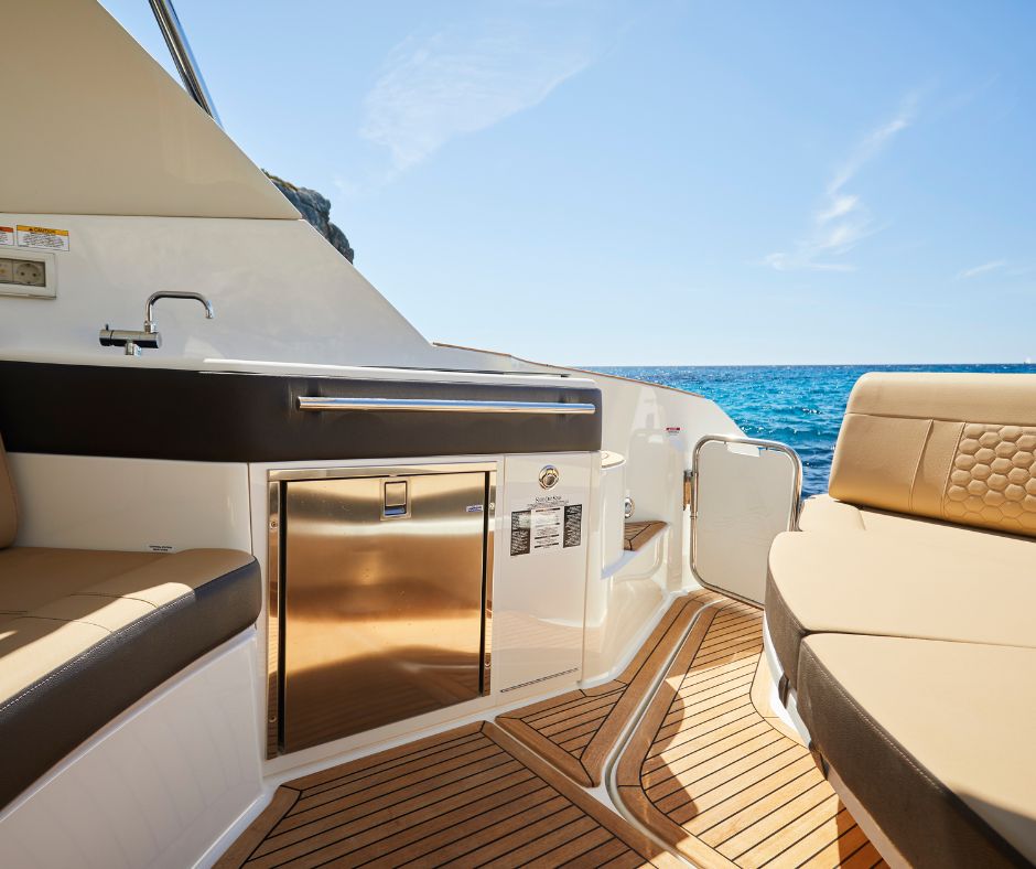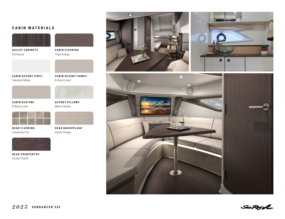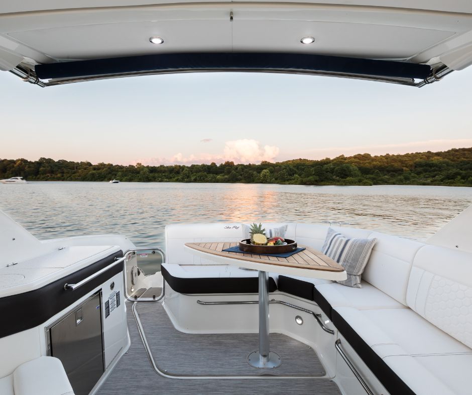 Koe ero, jonka syntyy muotoilusta, jossa ylellisyys ja käytännöllisyys kulkevat käsi kädessä. Tilavasta keulan oleskelualueesta tyylikkääseen ja mukavaan kajuuttaan asti Sundancer® 320 on suunniteltu tekemään vaikutus. Sisä- ja ulkotilojen monipuolisuus ja saumaton yhteys tuovat veneeseen ilmavaa eleganssia, joka erottaa Sundancer 320:n selvästi Sea Rayksi.