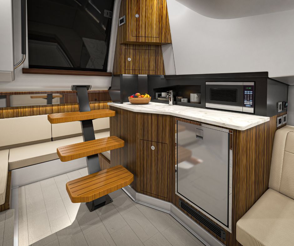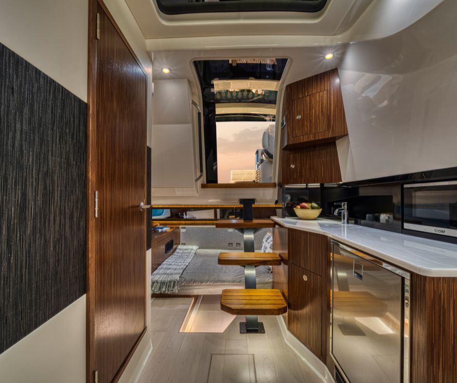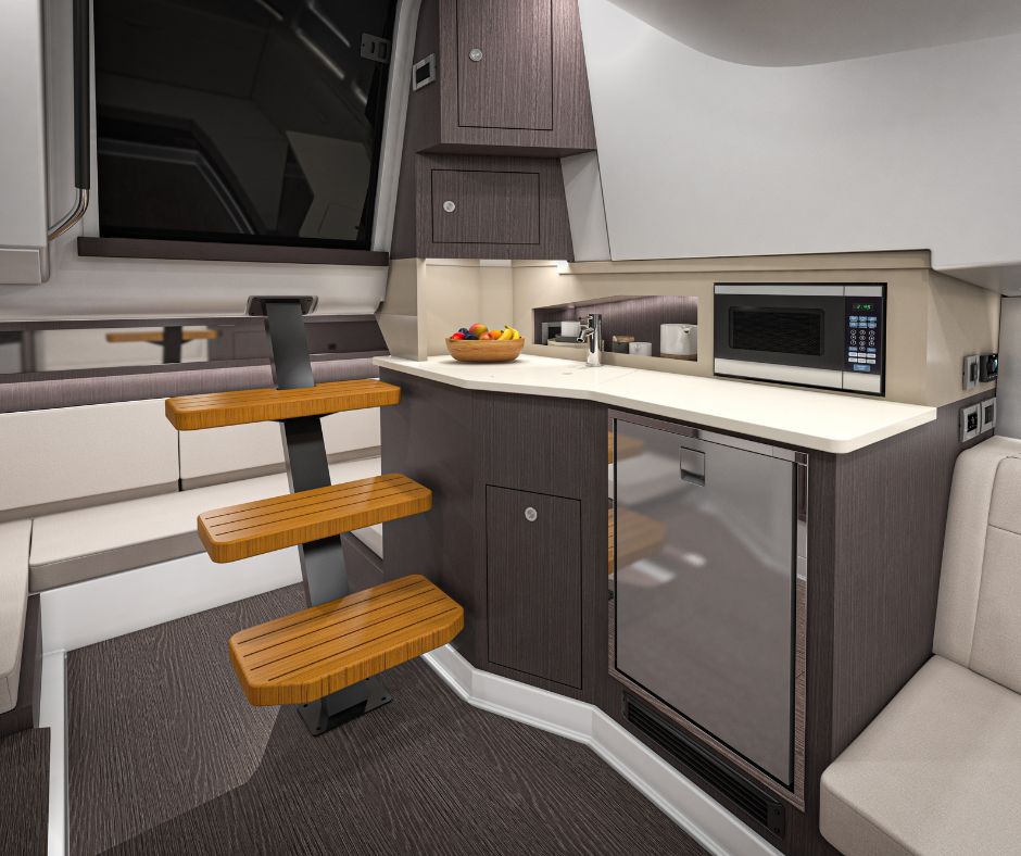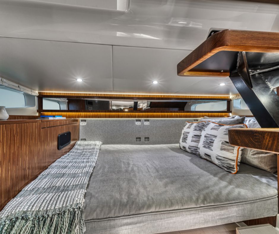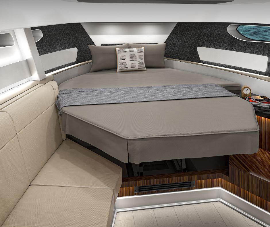 Sundancer 370 tarjoaa vapauden jakaa elämyksiä vesillä – tutussa ympäristössä tai uusilla reiteillä. Ylellisesti varusteltu hytti majoittaa neljä henkilöä ja sisältää kutsuvat mukavuudet, joiden ansiosta kotisatamaan ei tarvitse palata auringon laskiessa. Erillisellä suihkulla varustettu wc-tila tuo spa-tunnelmaa vesille, ja keulan V-muotoinen lounge-alue pehmeällä L-sohvalla ja älytelevisiolla on täydellinen paikka elokuvailtaan. Keittiössä on mikroaaltouuni, jääkaappi, allas ja kestävä työtaso, joiden avulla valmistat helposti välipaloja tai aterioita.