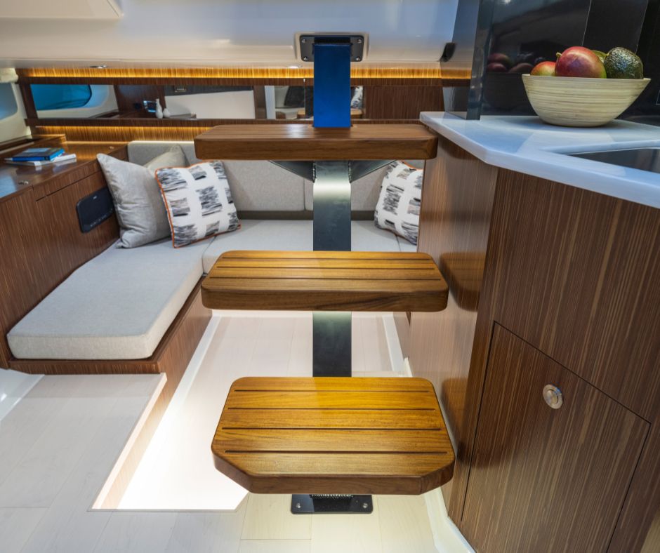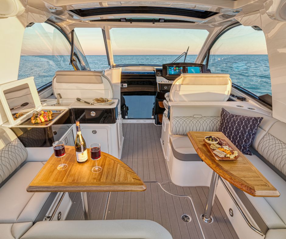 Sundancer 370 on suunniteltu monipuoliseksi ja äärimmäisen mukavaksi – jokainen yksityiskohta on huolella viimeistelty viihtyvyyttä silmällä pitäen. U-muotoinen avotila tarjoaa ihanteelliset puitteet viihtyisään yhdessäoloon päivästä iltaan, varustettuna märkäbaarilla, tiikkipöydällä ja lisävarusteina saatavilla olevalla sähkökäyttöisellä Kenyon-grillillä sekä jääkaapilla. Keulassa on tilaa jopa viidelle aikuiselle, ja alue muuntautuu tarpeen mukaan – tiikkipöydän tai täytepehmusteen avulla siitä syntyy joko ruokailutila tai tilava auringonottoalue, jossa ystävien ja perheen on helppo viihtyä.